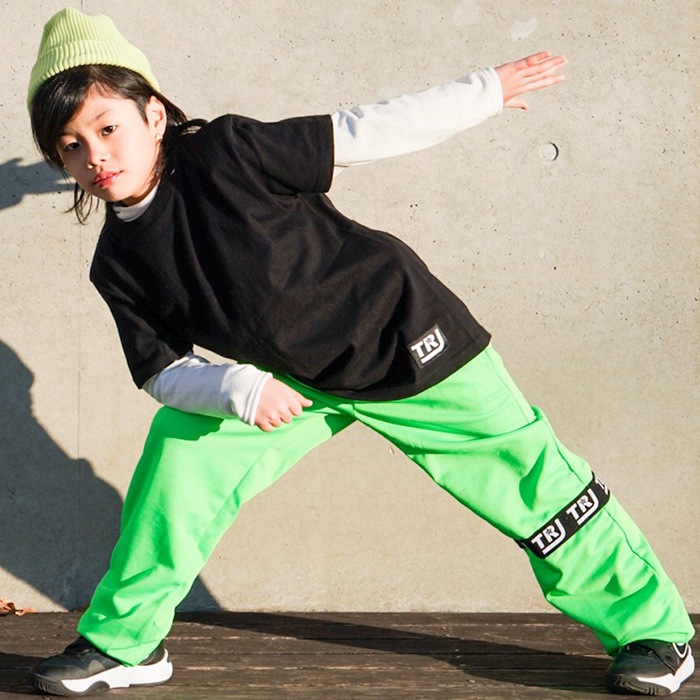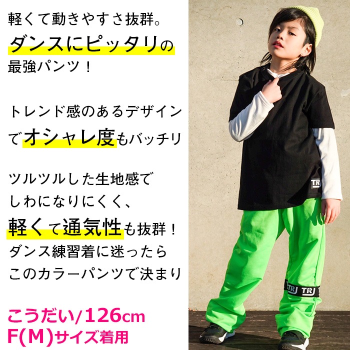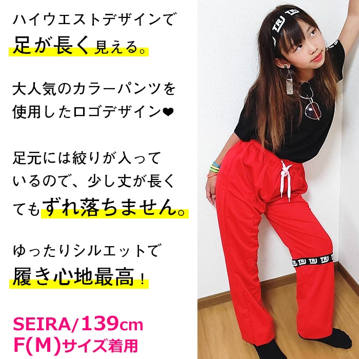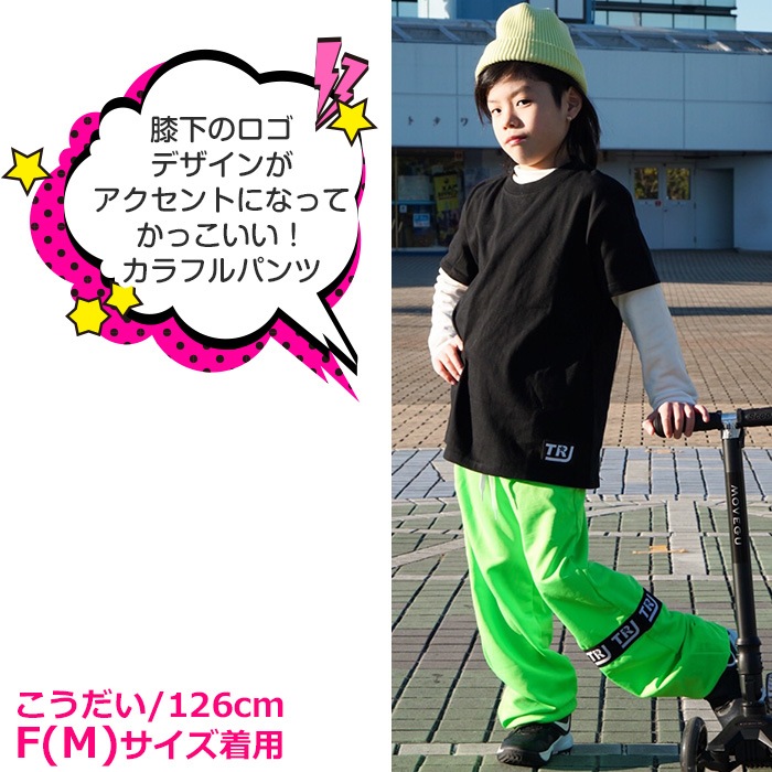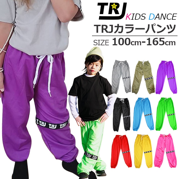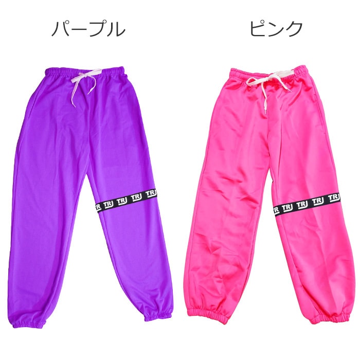 取寄せ3〜4営業日で発送 ★TRJオリジナル★ ひざロゴテープ ダンスパンツ 9カラー カラーパンツ カラパン スウェット 部屋着 ルームウェア ヒップホップ ダンス 衣装 ダンスパンツ キッズ ジュニア ダンス衣装 ジャージ ガールズ 女の子