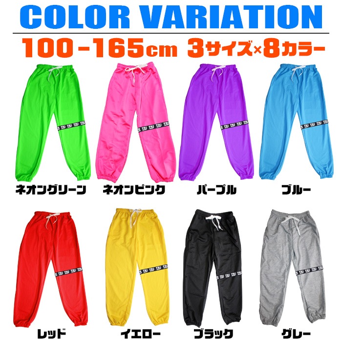 商品名 : 取寄せ3〜4営業日で発送 ★TRJオリジナル★ ひざロゴテープ ダンスパンツ 9カラー カラーパンツ カラパン スウェット 部屋着 ルームウェア ヒップホップ ダンス 衣装 ダンスパンツ キッズ ジュニア ダンス衣装 ジャージ ガールズ 女の子