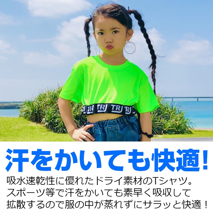 ラブブシール プレゼント中12/20まで 3〜4営業日で発送予定★TRJオリジナル★ネオンカラー 半袖 ロゴ Tシャツ ミニ丈 120cm〜185cm 9サイズ 6カラー 無地 半袖シャツ DRY ドライ 速乾 吸水 ダンスウェア 夏フェス 女の子 レディス 子供 ガール
