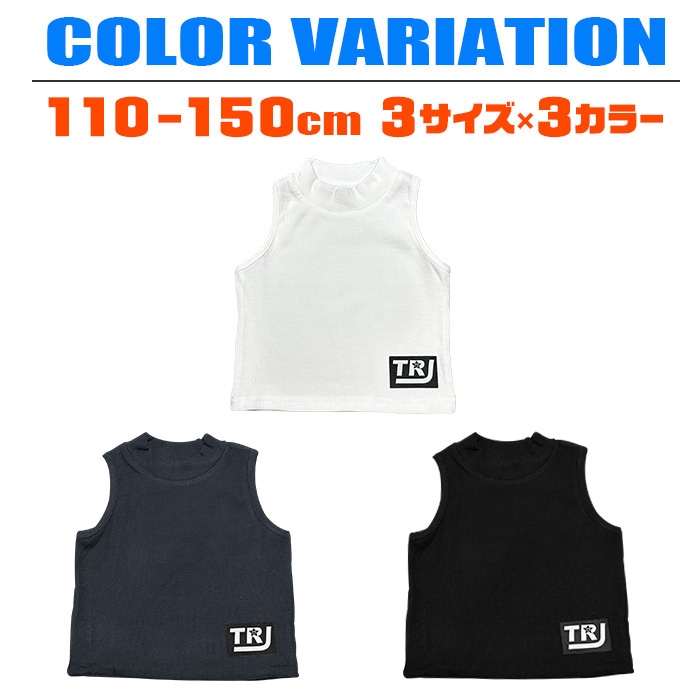 キッズ ハイネック タンクトップ ノースリーブ ワンポイントロゴ 無地 チューブトップ キッズ インナー ジュニア Tシャツ 3カラー ブラック/ホワイト/グレー スポカジ 野外スポーツ ヒップホップ ダンス衣装 春 夏 秋 冬