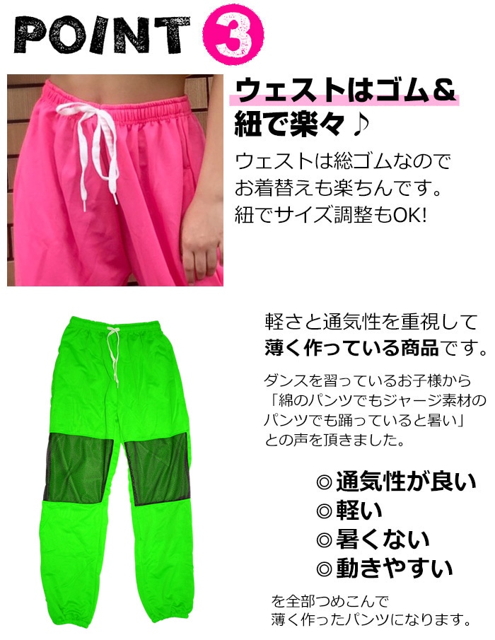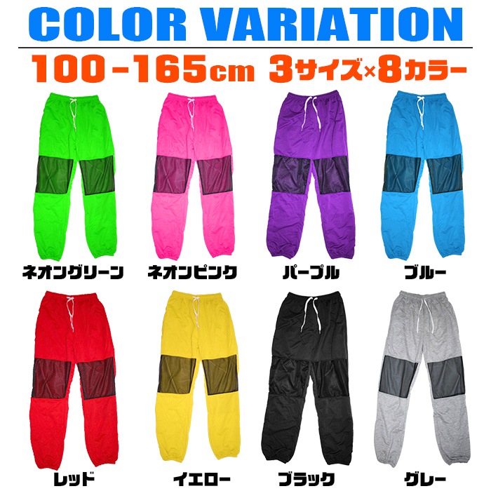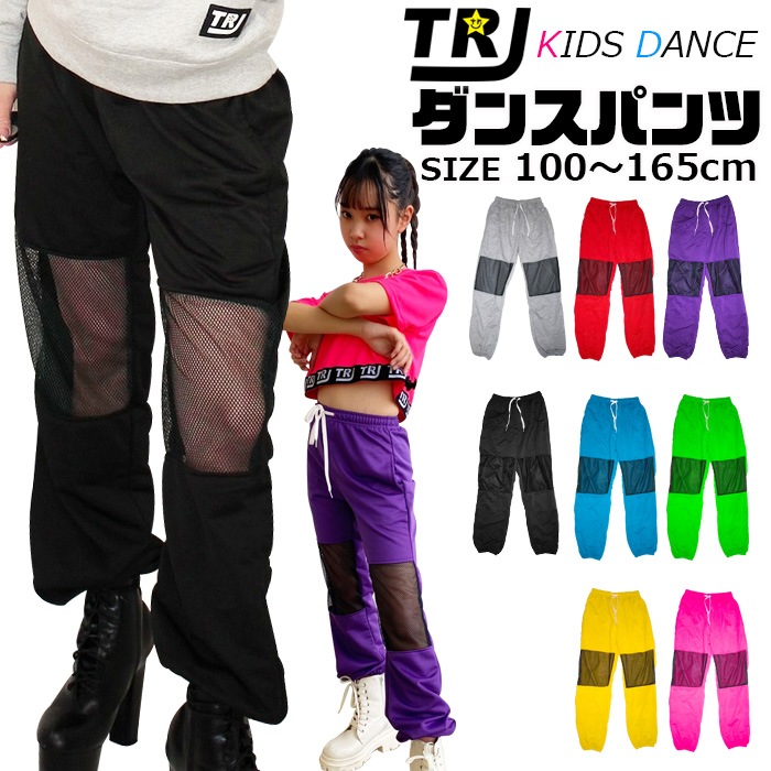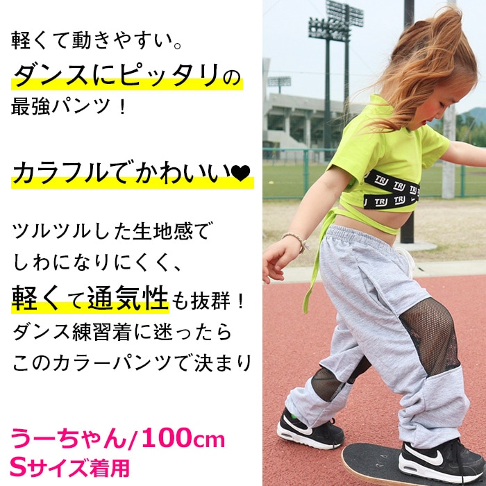 商品名 : 取寄せ納期7〜10日で発送★TRJオリジナル★ダンスパンツ カラーパンツ 膝カット メッシュ加工 ダンス 衣装 ヒップホップ ダンス衣装 女の子 男の子 子供服 キッズ 無地 9カラー 110cm〜165cm