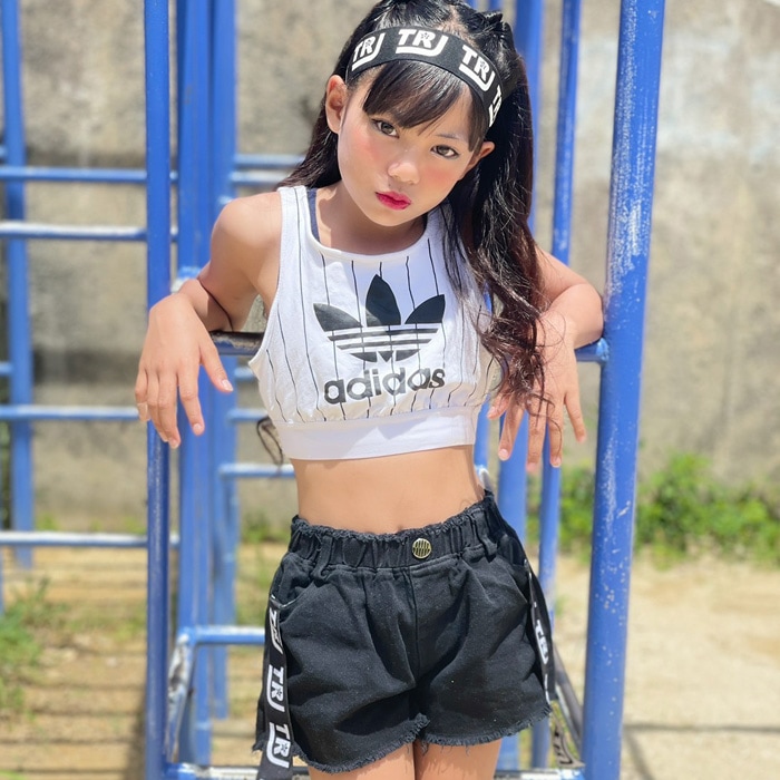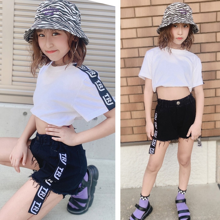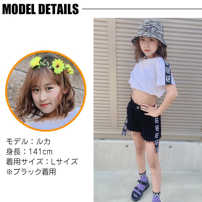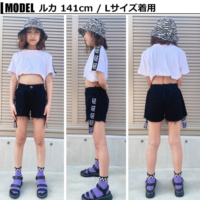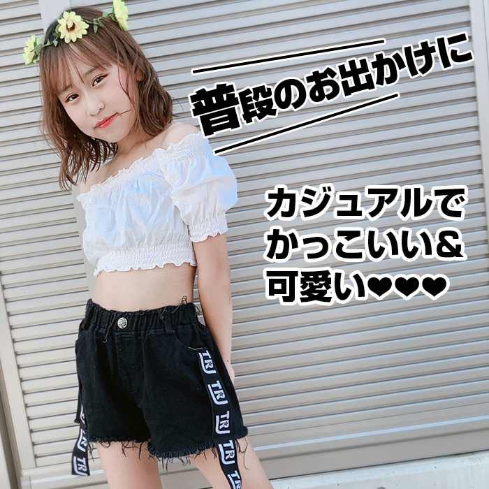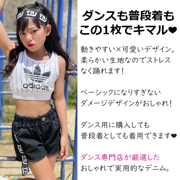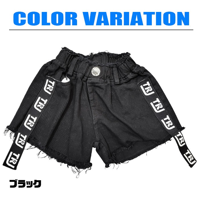 商品名 : 3〜5営業日で発送予定★TRJオリジナル★ショートパンツ ダメージデニム 女の子 子供服 キッズ 無地 ロゴリボン ブラック/ホワイト 110cm〜170cm ダンス衣装 ヒップホップ ダンスパンツ ジュニア ガールズ ステージ衣装 デニム ビーチパンツ