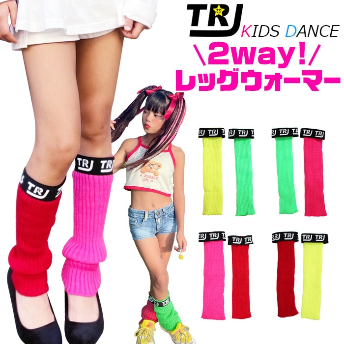 1〜3営業日で発送★TRJオリジナル カラフル レッグウォーマー ロゴ テープ 左右色違い アシンメトリー 靴下 女の子 子供用ソックス 無地 レッド/ピンク/グリーン/ネオンイエロー キッズ〜大人 フリーサイズ 運動会 体育祭 文化祭 目立つ 派手 春 夏 秋 冬