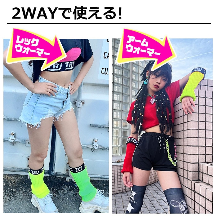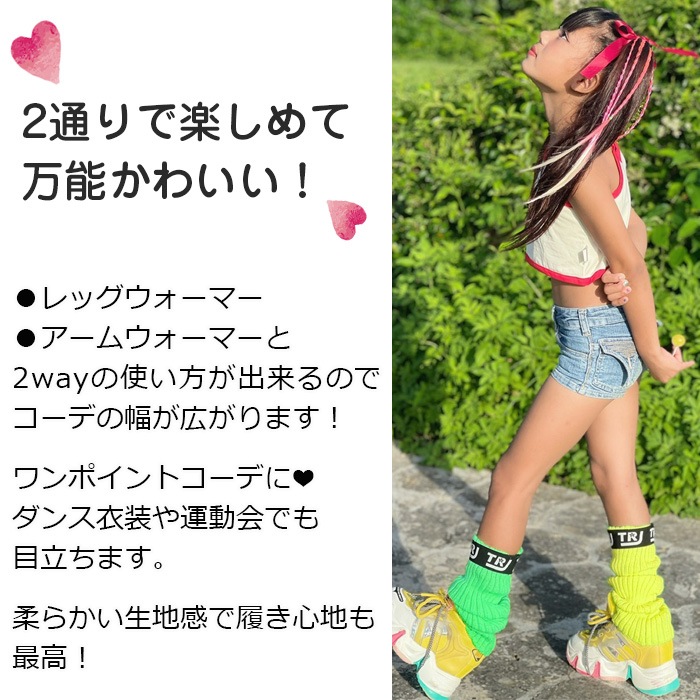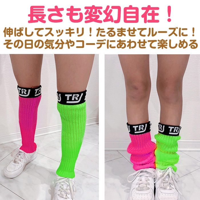 商品名 : 1〜3営業日で発送★TRJオリジナル カラフル レッグウォーマー ロゴ テープ 左右色違い アシンメトリー 靴下 女の子 子供用ソックス 無地 レッド/ピンク/グリーン/ネオンイエロー キッズ〜大人 フリーサイズ 運動会 体育祭 文化祭 目立つ 派手 春 夏 秋 冬