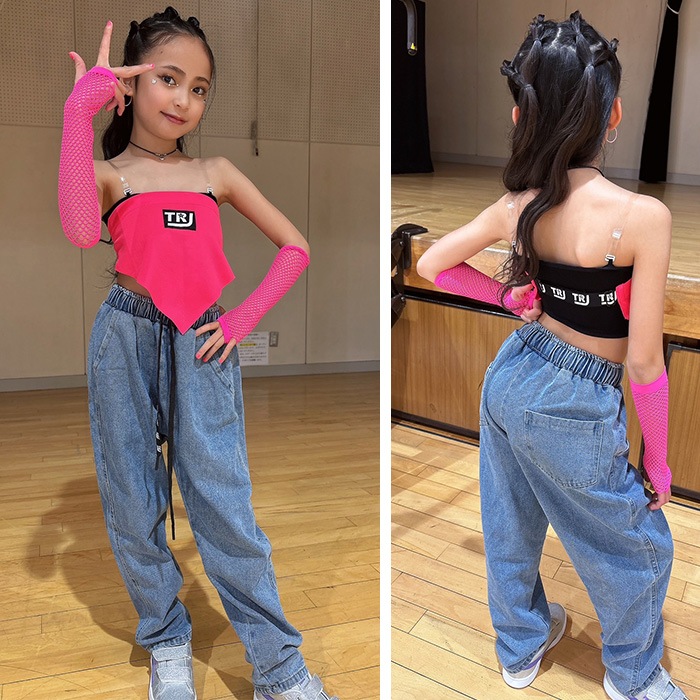 正午まで当日発送(土日祝除く)デニムパンツ ロゴ紐 女の子 男の子 子供服 キッズ ジーンズ デニム 110cm〜170cm ダンス衣装 ヒップホップ ダボダボ ジーパン ダンスパンツ イベント衣装 ステージ衣装 おしゃれ 韓国コーデ K-pop