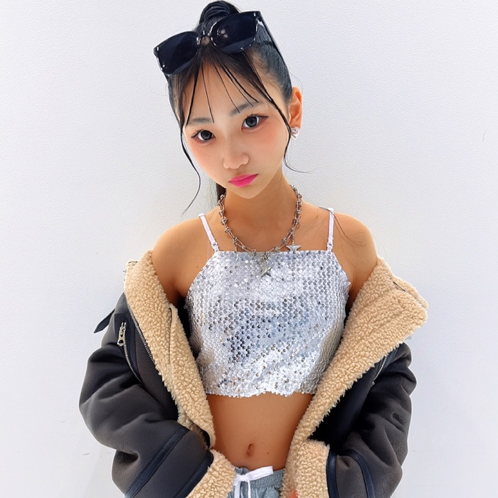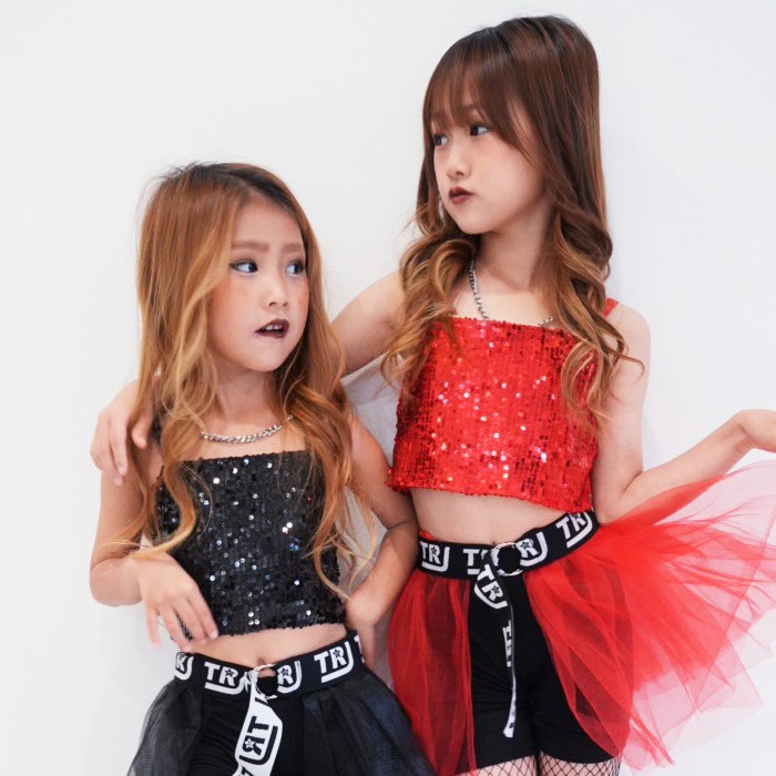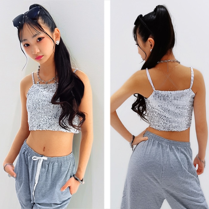 正午まで当日発送(土日祝除く)キッズ スパンコール キャミソール タンクトップ 子供服 女の子 ジュニア シルバー ゴールド ブラック レッド レインボー ヒップホップ ダンス衣装 ステージ衣装 イベント 発表会 ショート丈 へそ出し 腹見せ