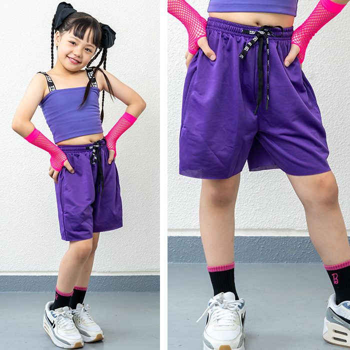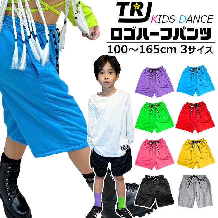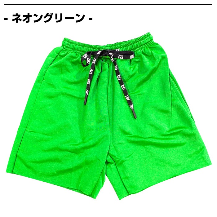正午まで当日発送 ハーフパンツ ダンスパンツ カラーパンツ ロゴひも 無地 バスケットパンツ シンプル ダンス衣装 キッズ 女の子 男の子 子供服 ネオンカラー ブラック グレー レッド ブルー イエロー グリーン パープル ピンク 100〜165cm