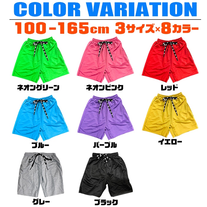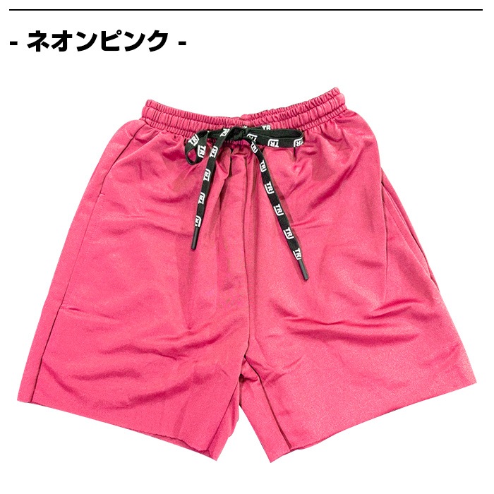 商品名 : 正午まで当日発送 ハーフパンツ ダンスパンツ カラーパンツ ロゴひも 無地 バスケットパンツ シンプル ダンス衣装 キッズ 女の子 男の子 子供服 ネオンカラー ブラック グレー レッド ブルー イエロー グリーン パープル ピンク 100〜165cm