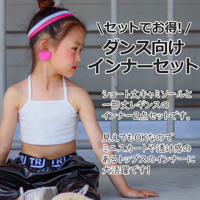 正午まで当日発送 送料無料 キッズ ダンスインナー2点セット 子供向け 一分丈レギンスとミニ丈キャミソール 子供服 チューブトップ 女の子 無地 ブラック ピンク グレー ホワイト 110cm〜160cm 練習着 レッスン着 小学生 中学生 ダンス衣装