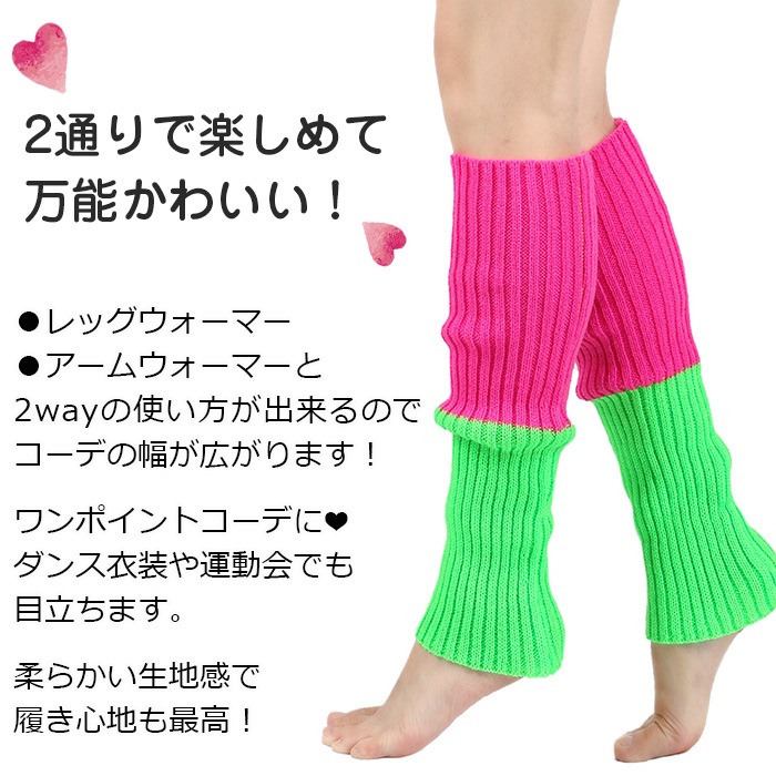 商品名 : 正午まで当日発送(土日祝除く)レッグウォーマー アームウォーマー ツートンカラー ネオンカラー 蛍光 靴下 ルーズソックス 女の子 子供用ソックス 無地 キッズ〜大人 ヒップホップ ダンス 衣装 小学生 中学生 くしゅくしゅ ハイソックス 2WAY 運動会