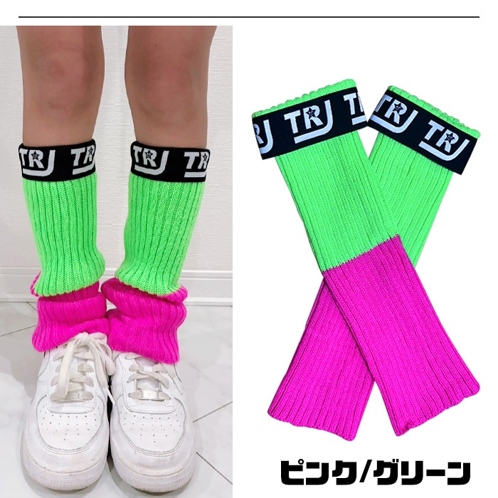 3〜5日で発送予定(土日祝除く)レッグウォーマー アームウォーマー ツートンカラー ロゴゴム ネオンカラー 蛍光 靴下 ルーズソックス 女の子 子供用ソックス キッズ〜大人 ヒップホップ ダンス 衣装 小学生 中学生 くしゅくしゅ ハイソックス 2WAY 運動会