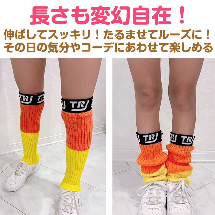 商品名 : 3〜5日で発送予定(土日祝除く)レッグウォーマー アームウォーマー ツートンカラー ロゴゴム ネオンカラー 蛍光 靴下 ルーズソックス 女の子 子供用ソックス キッズ〜大人 ヒップホップ ダンス 衣装 小学生 中学生 くしゅくしゅ ハイソックス 2WAY 運動会