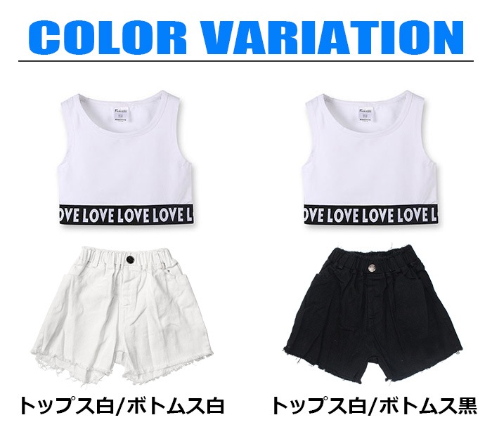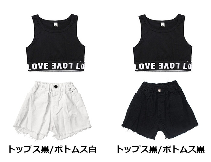 商品名 : 正午まで当日発送(土日祝除く)【訳あり】上下2点セット タンクトップ ショートパンツ 女の子 子供服 キッズ ロゴ 無地 4サイズ ショート丈 ダメージ ダンスパンツ レッスン着 練習着セット 部屋着 ダンス衣装 ヒップホップ 小学生 中学生