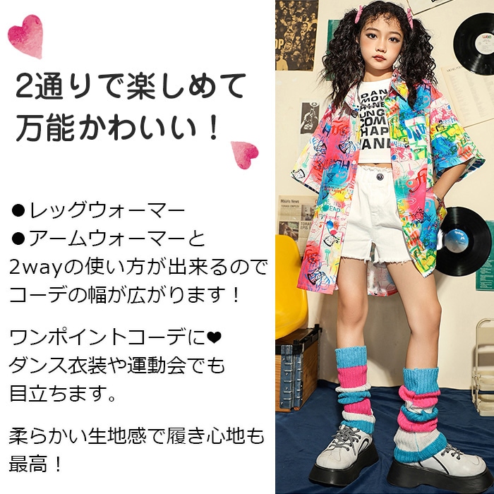 ラブブシール プレゼント中12/20まで 正午まで当日発送(土日祝除く)レッグウォーマー2足セット アームカバー レッグカバー 女の子 子供 フリーサイズ ヒップホップ ダンス 衣装 ルーズソックス ハイソックス 体育祭 キッズ ジュニア 運動会 子供服 クシュクシュ