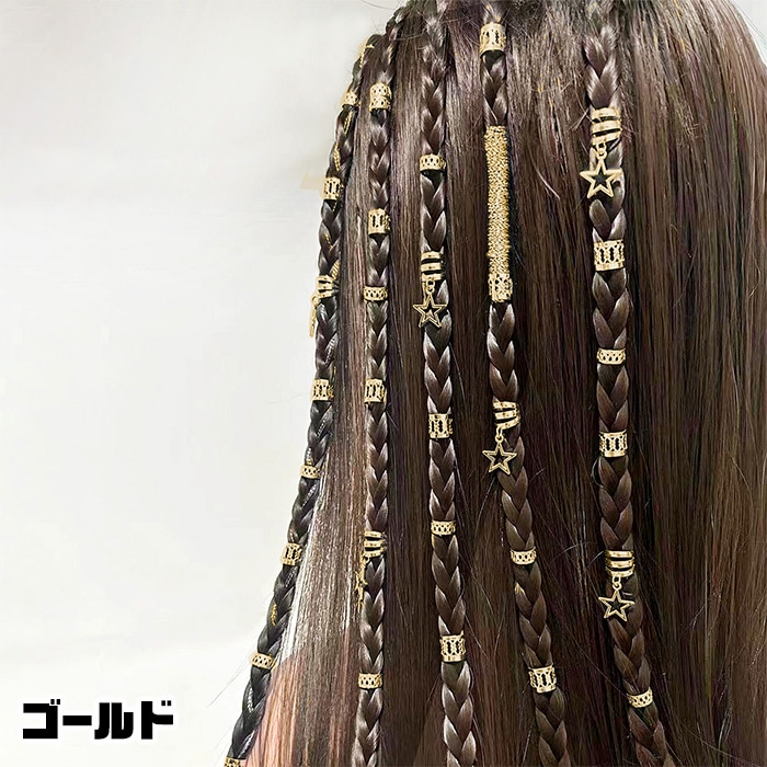 商品名 : 正午まで当日発送(土日祝除く)ヘアリング 36個セット ブレイズアクセサリー 星 スター 女の子 キッズ ヘアジュエリー ブレイズリング ゴールド シルバー ヘアアクセサリー ヘアービーズ 編み込み 三つ編み ドレッドクリップ 髪飾り