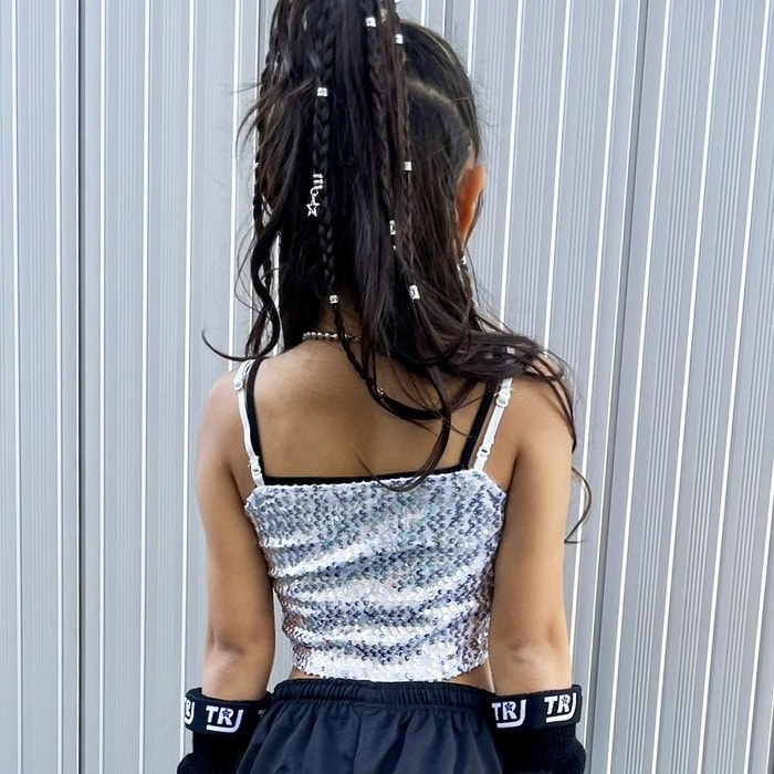 3〜5日で発送予定(土日祝除く)キッズ ダンス 衣装 セットアップ ステージ衣装 上下3点セット キャミソール フレアスカート チュチュスカート スパンコール パニエ 100cm〜150cm 3サイズ 無地 女の子 キッズ 銀色 ガールズダンス ヒップホップについてつぶやく