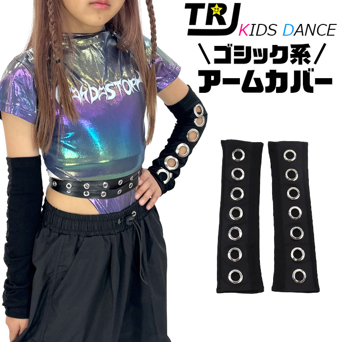 正午まで当日発送(土日祝除く)アームカバー 穴あきリング ロンググローブ アームウォーマー 暗黒系 キッズ 子供 女の子 無地 ブラック フリーサイズ セクシー ゴスロリ 原宿系 ロック パンク ゴシック系 地雷系 コスプレ 指無し 手袋
