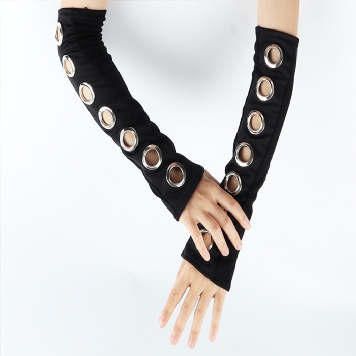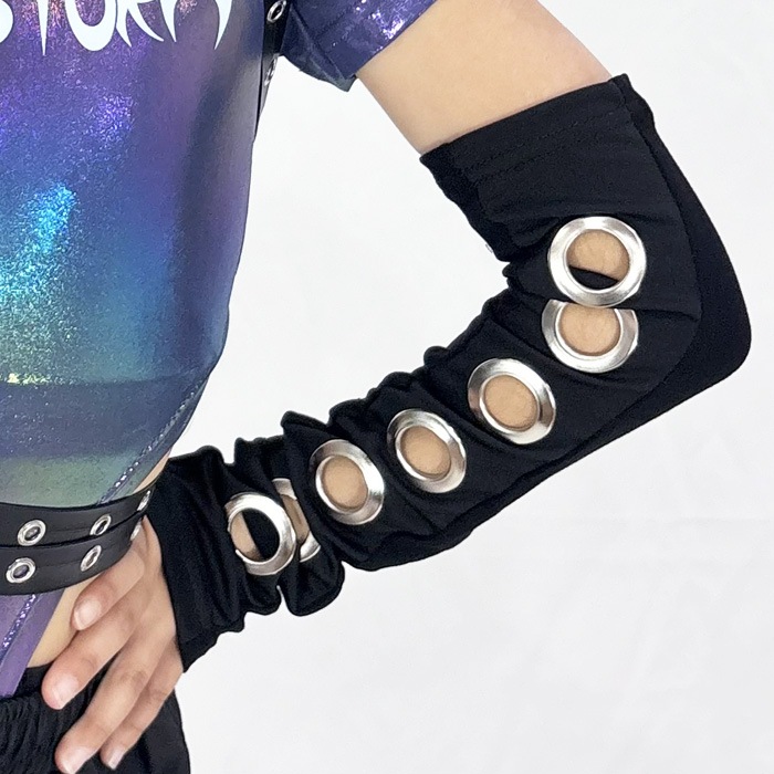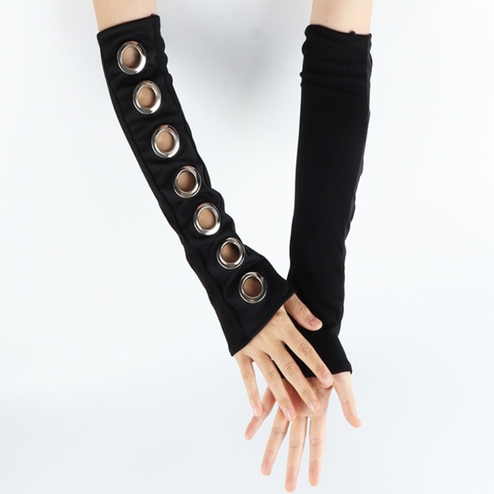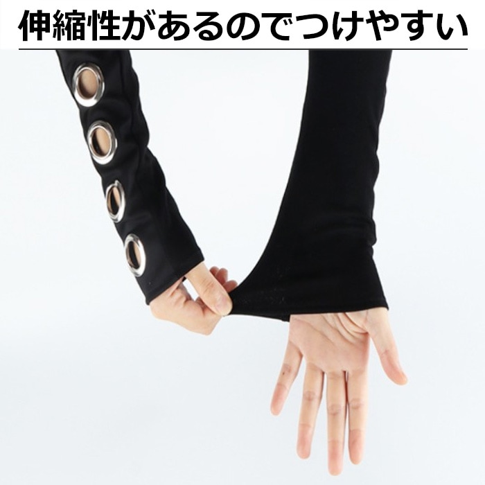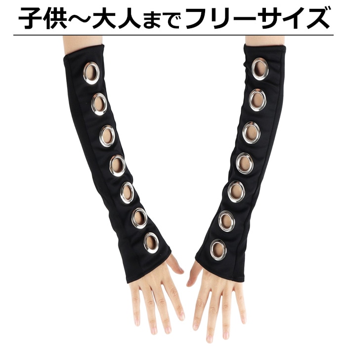 商品名 : 正午まで当日発送(土日祝除く)アームカバー 穴あきリング ロンググローブ アームウォーマー 暗黒系 キッズ 子供 女の子 無地 ブラック フリーサイズ セクシー ゴスロリ 原宿系 ロック パンク ゴシック系 地雷系 コスプレ 指無し 手袋